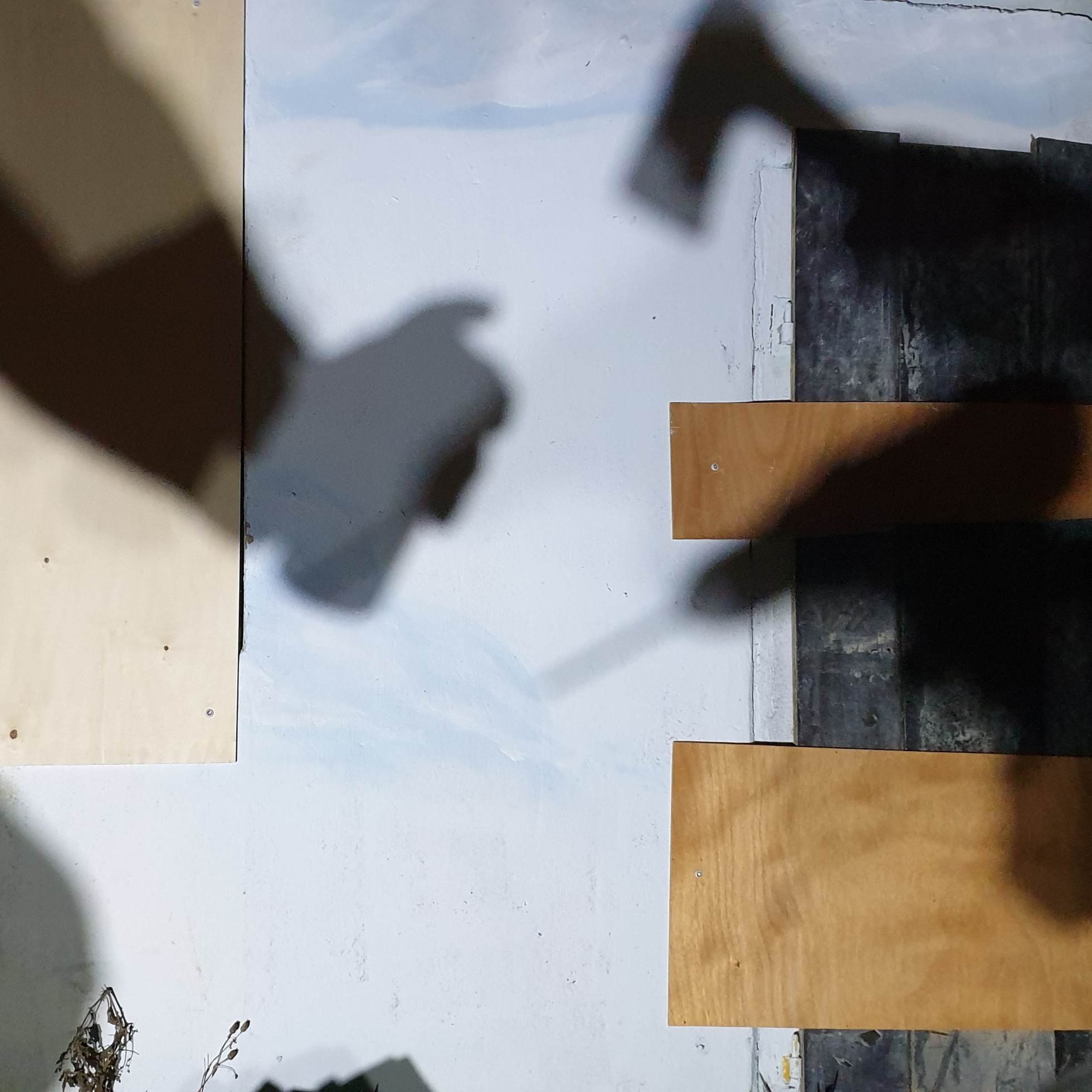 Mit Schaufeln, Pinseln und Farbeimern, mit Stromaggregat und Baustrahlern im Gepäck besetzten am Mittwoch vor Ostern Giorgio Silvano und Thorsten Nees symbolisch die Hütte auf dem Baufeld der Neuen Stadtmitte gegenüber dem Rathaus. „Die Kunst ist hiermit der erste Bewohner des neuen Stadtteiles“, so Thorsten Nees. „Die Kunst beginnt bereits jetzt, die Zukunft dieses Ortes zu gestalten.“ Dabei steht fest: Ein langes Leben ist dem Werk nicht vergönnt. Spätestens im Spätjahr erfolgt der Abriss. Vergängliche Kunst also. „Kunst muss nicht für die Ewigkeit sein“, so Giorgio Silvano, „Kunst muss zur Diskussion einladen – und die Herzen und die Fantasie anregen.“ Altes geht, neues kommt.