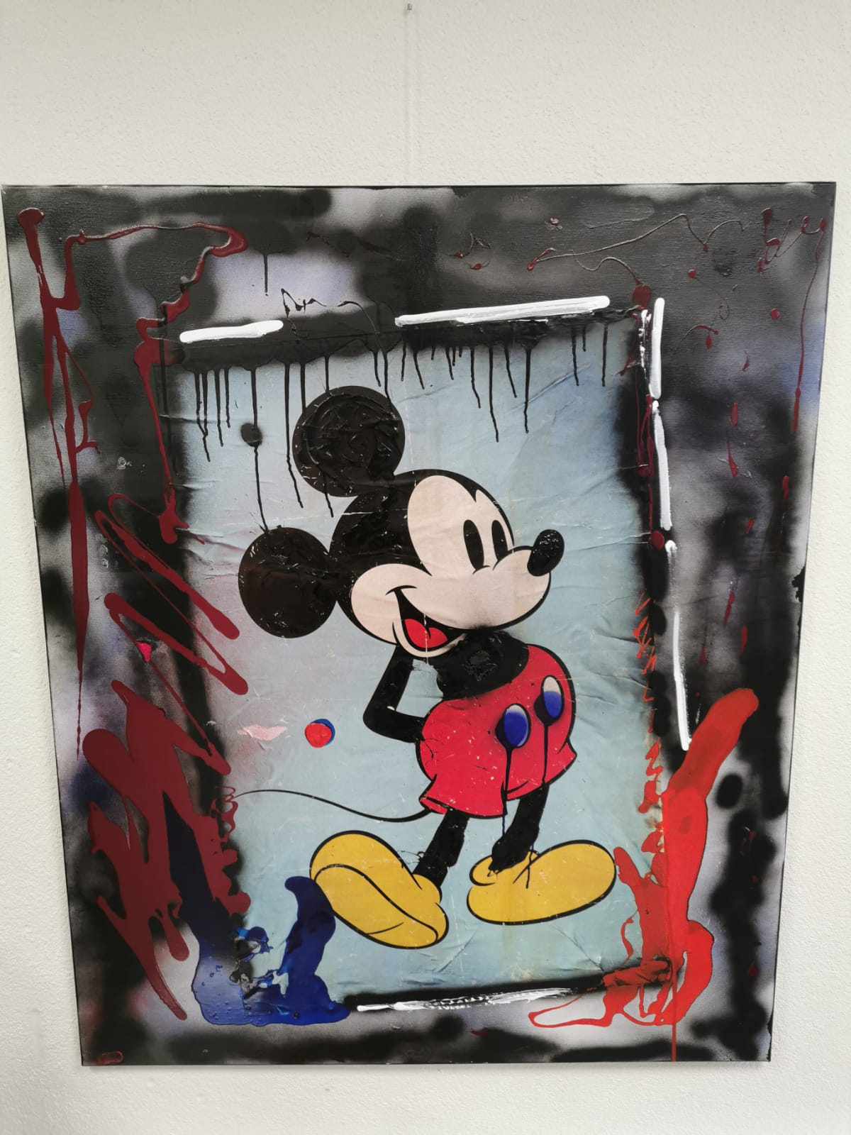 In Pop-Art Bildern entreißt und isoliert Krink seine Motive aus ihrem ursprünglichen Kontext und verändert ihren Bedeutungsgehalt. In seinen „Mausbildern“ etwa verliert die Comicmaus im neuen Ensemble ihren unschuldigen Charakter zugunsten einer kritischen Botschaft und neuen Sichtweise.