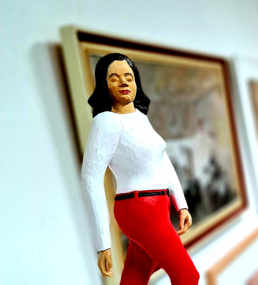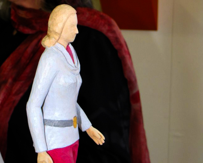 Das Besondere an den Werken Kiefers ist, dass die Figuren nicht erst geschnitzt und dann auf ein Holzpodest geklebt, sondern dass sie aus einem großen Holzblock herausgearbeitet wurden. Wer versucht sich vorzustellen, wie schwierig es sein muss, die Freiräume zwischen Armen oder Beinen einer Figur herauszuschnitzen, kann vielleicht ermessen, über welch handwerkliches Geschick Karl-Heinz Kiefer verfügt.