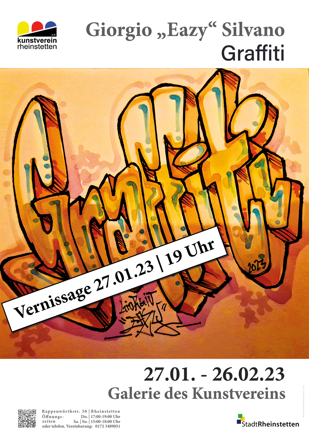 Die Februar-Ausstellung des Kunstvereins Rheinstetten zeigt Werke von Giorgio Eazy In der vergangenen Woche wurde in der Galerie in der Rappenwörthstr. 30 sehr viel gehämmert, geschnitten, gesägt, gebohrt, angemalt und angesprüht. Bis zur Vernissage am Freitag um 19 Uhr soll alles fertig sein – und es sieht gut aus: Die Februar-Ausstellung, vielmehr ein Spektakel rund… „Abfahrt, Abfahrt!“ – Graffiti und der „Future Soul Train“ weiterlesen